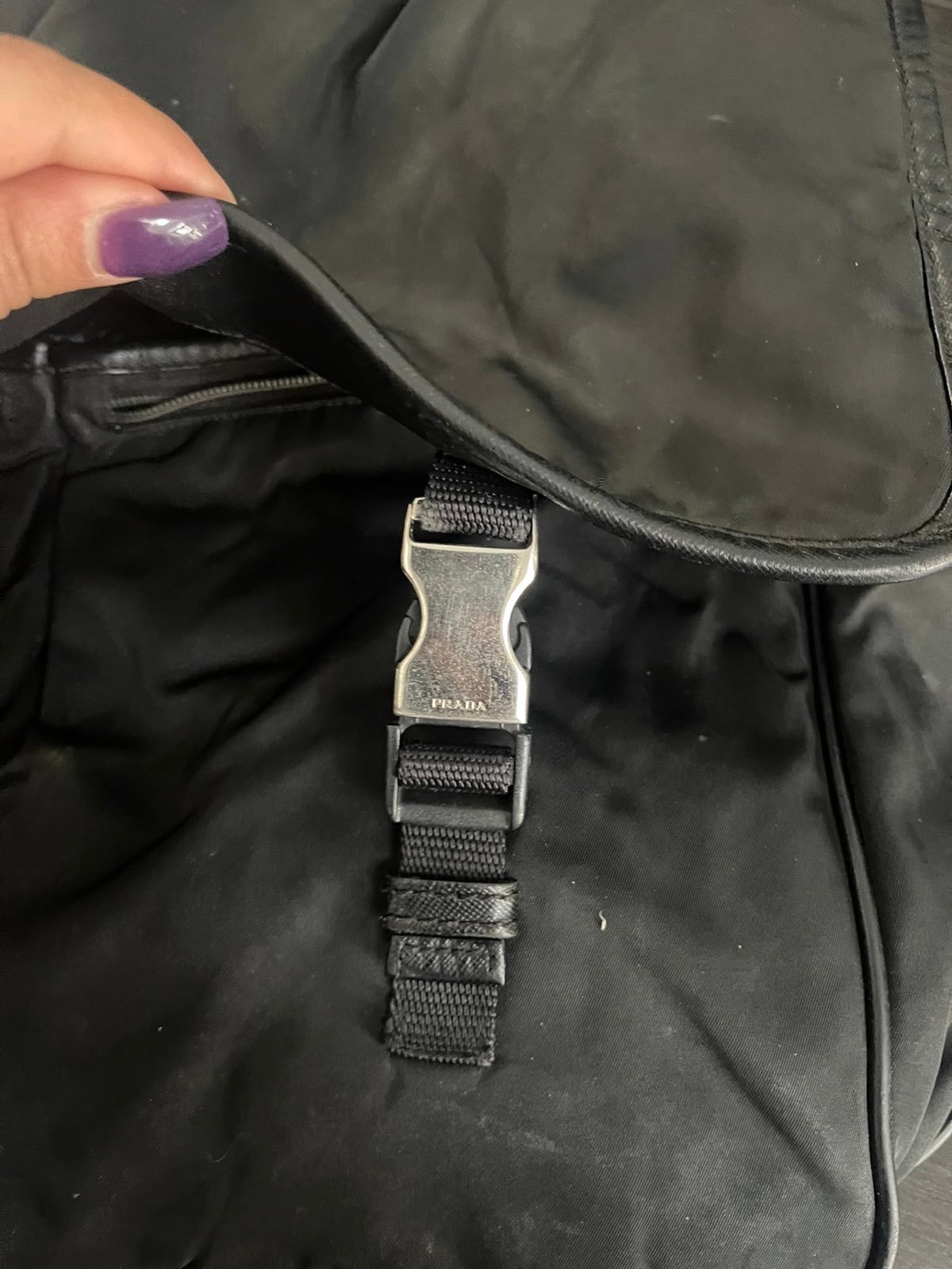 Prada briefcase fair condition a missing lock how you can see on the pictures ripe on the inside you might be able to purchase a luck still functional some stains on the front and back of the back. If you need more pictures let me know
